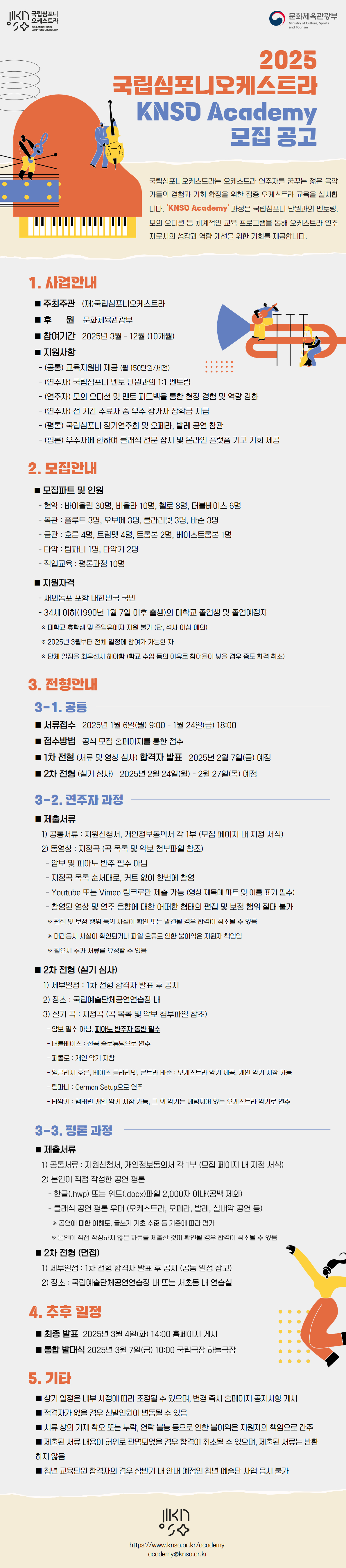 2025 KNSO Academy (청년 교육단원) - 연주자, 평론과정 모집 안내