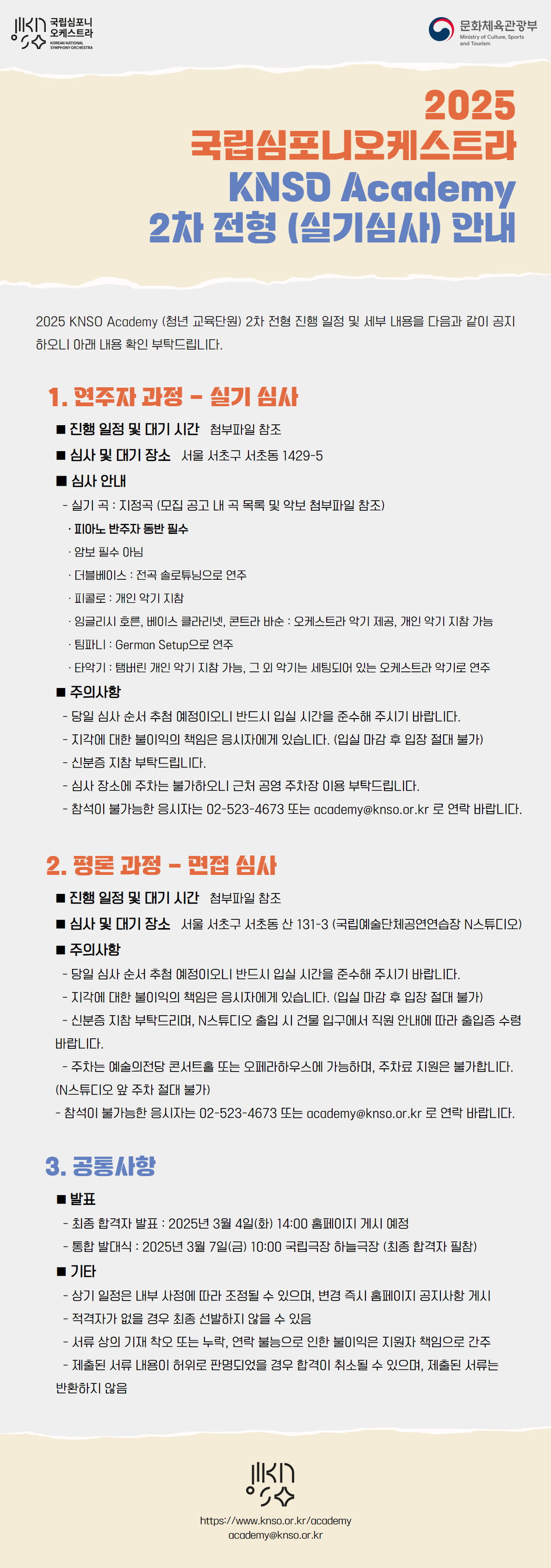 2025 KNSO Academy (청년 교육단원) 모집 관련 2차 전형 세부 내용을 아래와 같이 공지하오니 확인 부탁드립니다.